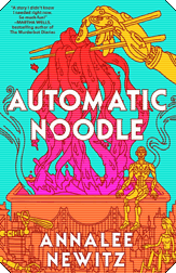 How this is a cozy, feel good story, is in the way the bots decide for themselves to reopen the restaurant. They have reason to resent humans, but still realize how much humans need food. The bots do not eat, but they do need money, reasons for which I'll get to in the next paragraph. Hands had been created to be of some service in the military, but the war ended before he was assigned. He learned about food by searching the warehouse he was in, coming across cases of packaged noodles. When he gained access to the digital world he watched cooking videos. The restaurant had offered typical fast food like hamburgers and fries, but Hands wanted to make it a noodle shop. In an afterword, Annalee says that part of the story derived from the first time they ate biang biang noodles in New York's East Village, and has sampled them in many other cities, but not yet in their place of origin, China's Shaanxi Province. Hands also observed a Chinese chef making the hand-pulled noodles, and asked her for advice. The key was for the flour and all other ingredients to be as fresh as possible. Cayenne and Hands had previously worked together at a food truck, and Cayenne had been in charge of ordering supplies. There was a major problem though, but Sweetie thinks she dealt with that in the best way possible.