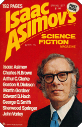 It all began with the short story "Air Raid," which appeared in the very first issue of Asimov's Science Fiction Magazine, Spring 1977. There were only four issues that first year, six in the second, then twelve for many years after. Don't let the cover image confuse you, because the story by John Varley came first in the Table of Contents, not last. The names are just in alphabetical order, but not every writer was listed on the cover. However, that first story was not "Air Raid," but rather the novelette "Good-bye, Robinson Crusoe." Varley had already sold that, but one of the editors also read "Air Raid" and wanted it too, so for the first and only time Varley published a story under a pseudonym. Probably because John's father was also a John (Edward), and I'm sure it was a common name at his school, he normally used his middle name Herbert, shortened to Herb most of the time, and that continued well into his adult years, known as Herb to many friends and fellow writers. For a last name he chose his mother's maiden name, Boehm, which is pronounced Beam. It was never a secret of who wrote "Air Raid," so anywhere you look for publishing information you will see "Air Raid" credited to John Varley [as by Herb Boehm], and that includes his first collection published the following year.