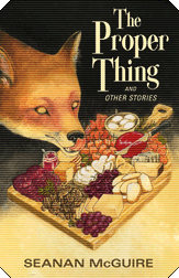 That brings us to the last story, the title story, which is also the longest. It also deals with food and other specialty items. "The Proper Thing" is a cheese shop. A magical cheese shop. Not just because the cheeses have magical properties, but the shop is one of those types that can only be found by those who know its secrets. Even the shopgirls Masie and Alvy couldn't find it if they lost their keys, couldn't get in if they didn't have their keys even if they could find it. Another magical thing about it is neither Masie or Alvy are truly human, although they appear so. They have been transformed by magic from their original form, Maisie having been a fox, and she is under the impression Alvy was a crow, when she was actually a cow. Both of their lives are thrown into turmoil when the shop is robbed of all its cheese, and they have to call on the owner (fully human?) for help. The owner's secretary is with him, a former shopgirl who started life as a vulture.